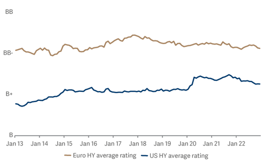 Figure two: Over the past decade the European high yield universe has been of higher quality