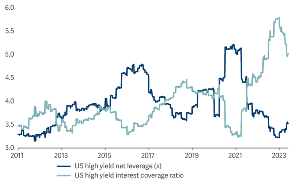 Source: BofA Merrill Lynch as at 30 June 2023. Tracked subset of US high yield issuers. EBITDA: earnings before interest, taxes, depreciation and amortisation.