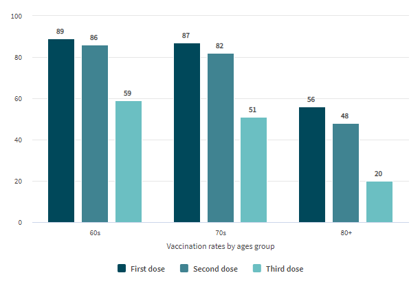 Figure 1: Booster uptake among China’s elderly has ground to a halt (per cent)