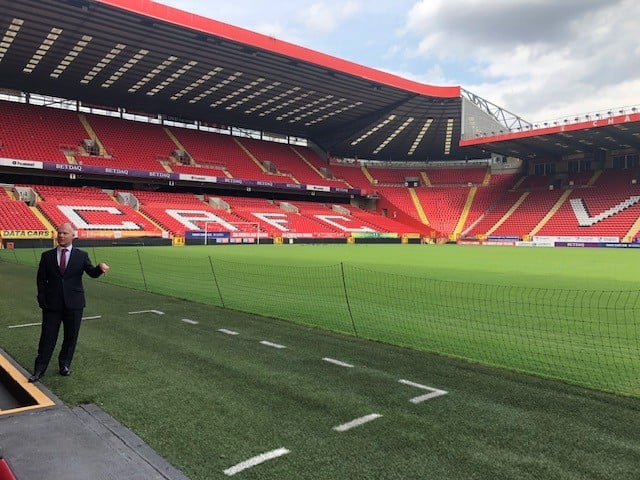 The (portfolio) manager: Richard Colwell struts his stuff by the Charlton Athletic dugout