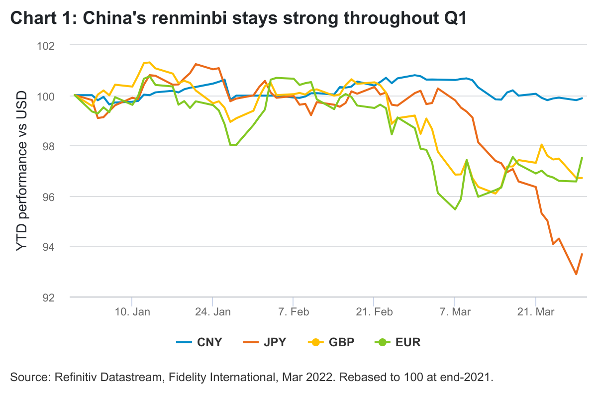 Russia’s invasion of Ukraine and the US Federal Reserve’s move to start hiking interest rates has led to rising market volatility globally, driving investors to the perceived shelter of traditional safe havens like the US dollar or gold. But while currencies including the euro, yen, and pound have weakened against the US dollar, China’s renminbi has held its ground surprisingly well. And while yields on US Treasuries have shot up, China’s government bond yields have been an oasis of relative stability.