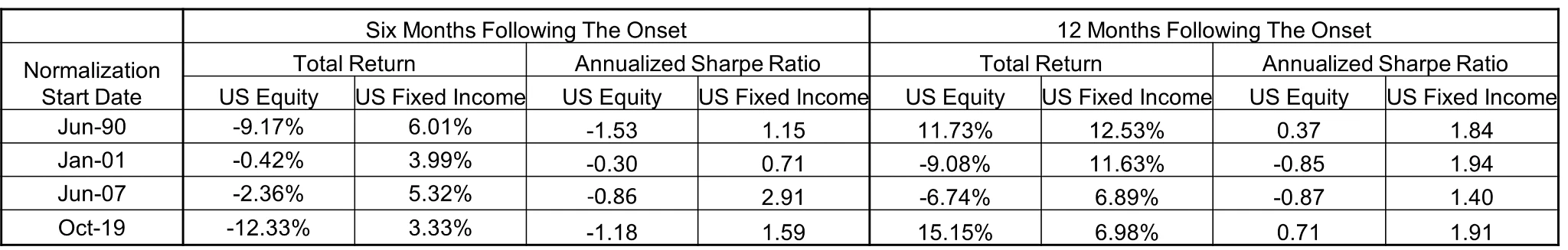 Exhibit 2: Fixed income and equity returns and Sharpe ratios during periods of yield-curve normalization