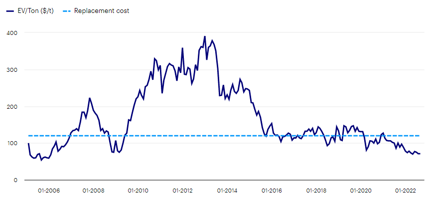 Figure 4. Enterprise value vs replacement cost