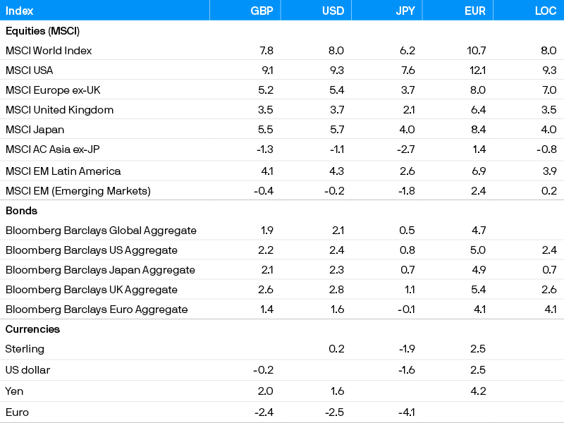 Source: FTSE, MSCI, Refinitiv Datastream, Standard & Poor’s, TOPIX, J.P. Morgan Asset Management. All indices are total return in local currency, except for MSCI Asia ex-Japan and MSCI EM, which are in US dollars. Past performance is not a reliable indicator of current and future results. Data as of 31 July 2022.