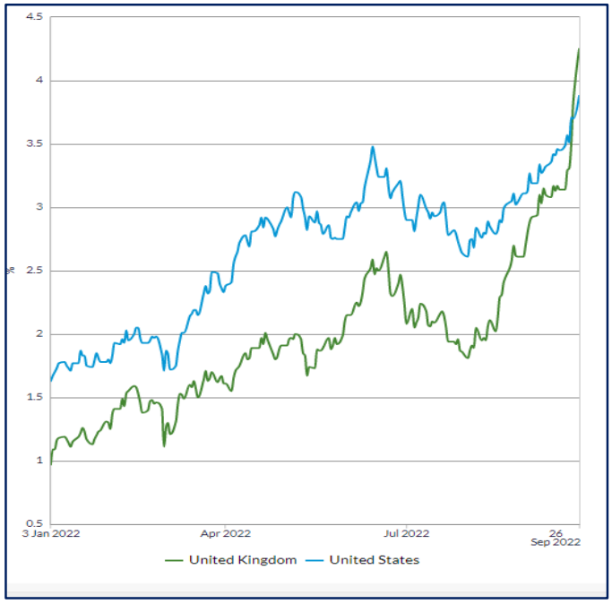 Although not restricted to the UK, the recent turmoil in financial markets has been more concerning for UK investors than those in other regions. Prime Minister Harold Wilson’s quip that ’a week is a long time in politics‘, made during one of the many political crises in the 1960s, seems remarkably apt following this week’s mini budget from Kwasi Kwarteng.